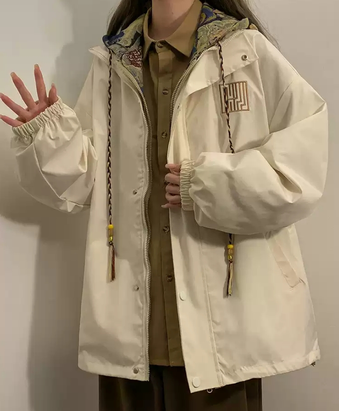 日系休闲宽松复古情侣长款风衣外套