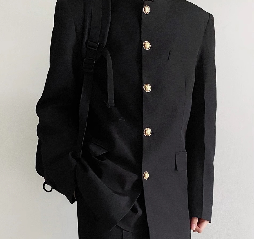 制服男秋冬季热血高校立领西装套装中山装学生班服诘襟西服外套