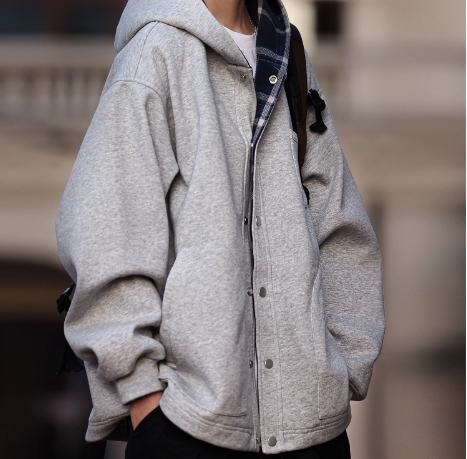 纯色格纹开衫男女休闲宽松连帽卫衣外套